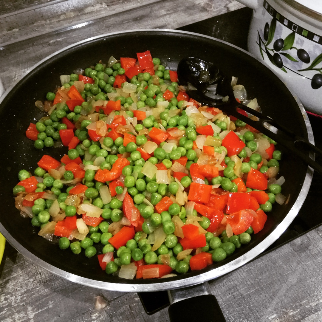 Ну вот. Можно варить супчик с фрикадельками, конечно, но я больше люблю на курином бульоне. В промозглую погоду лучше грибной, конечно, но, когда погода поворачивает на весну, то только овощной. Итак, лук, болгарский перец, замороженный зеленый горошек - обжарить в масле, сначала в бульон отправить брюссельскую капуста, через пару минут можно уже овощи из зажарки, ближ ек концу варки - соль, перец, три давленых зубчика чеснока целиком и немного свежей петрушки. Время варки определяю на вкус горошка, если уэже мягкий - срочно снимать:)
