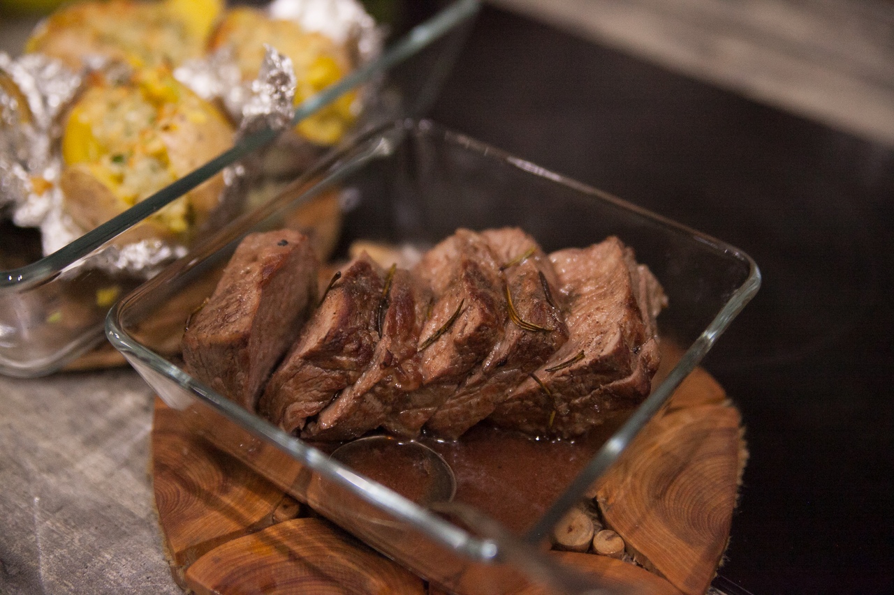 Этот ужин просто чудо, хотя снова ни слова о соли. может, они, того, за бессолевую диету? Ну ладно. Итак, это промо от "Ужин дома", второй ужин. Ростбиф с начиненным картофелем и розмарином.