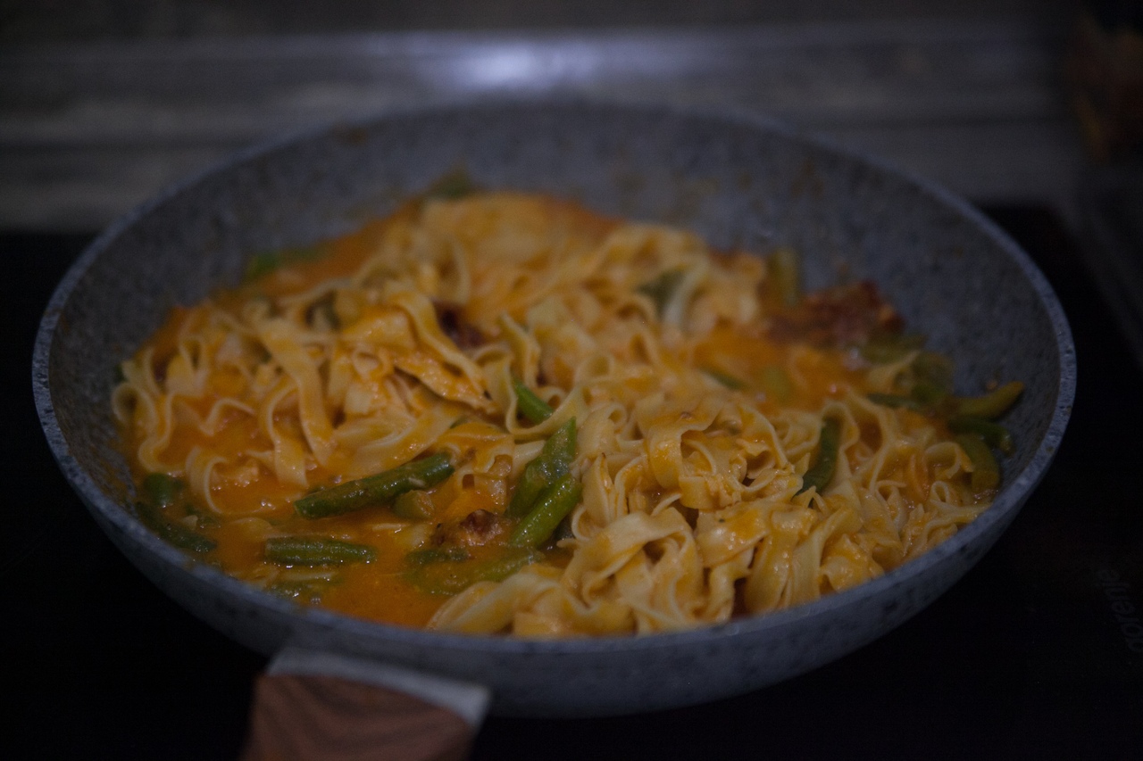 Второй ужин от "Вкус на дом" Тяльятелле с пряным цыпленком в томатном соусе. вкусно. Не шик для меня лично, но я просто не любитель пасты. Хотя сама паста как раз отменная. Пусть будет 5. Минус вроде ставить не за что:)