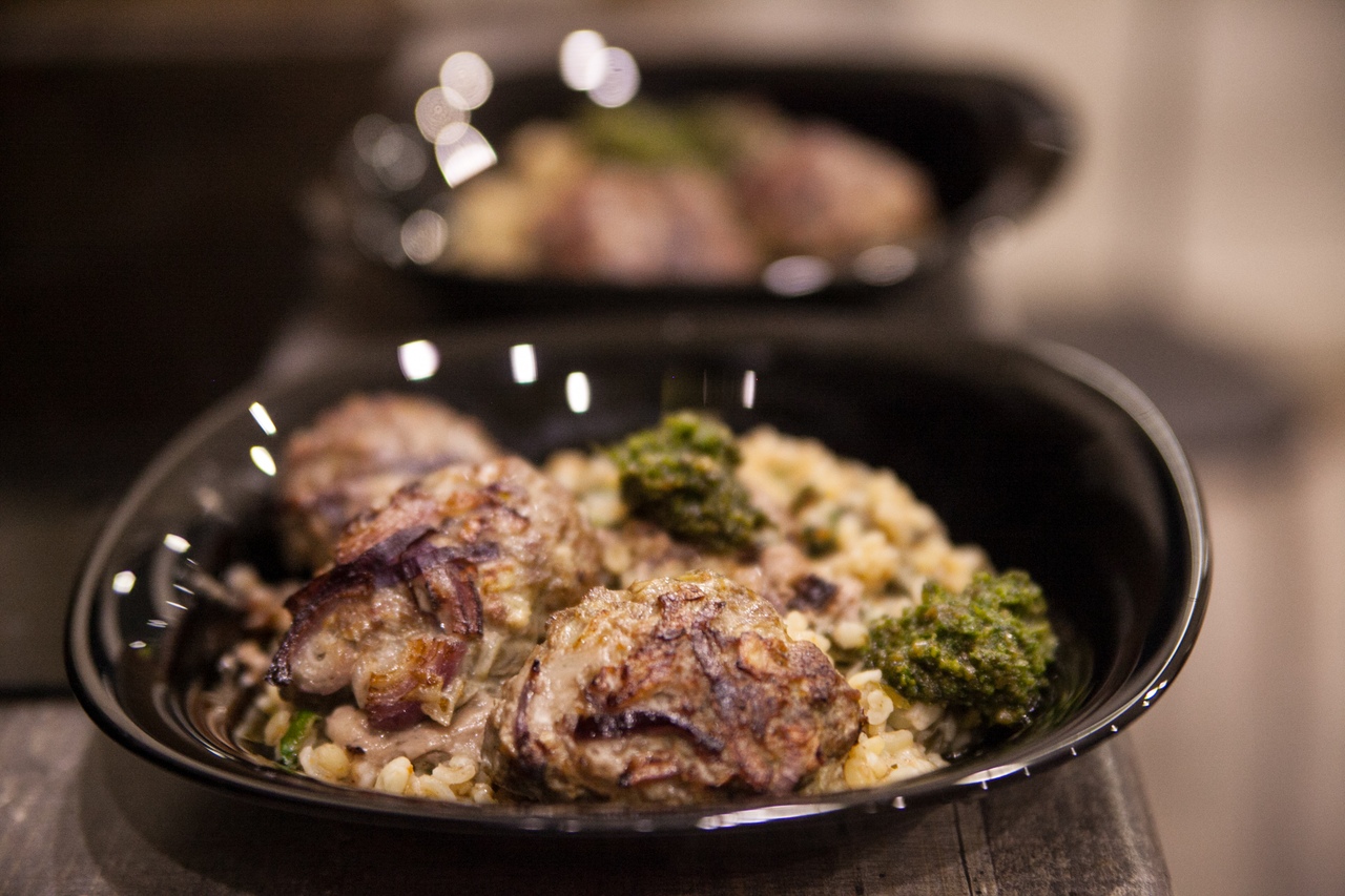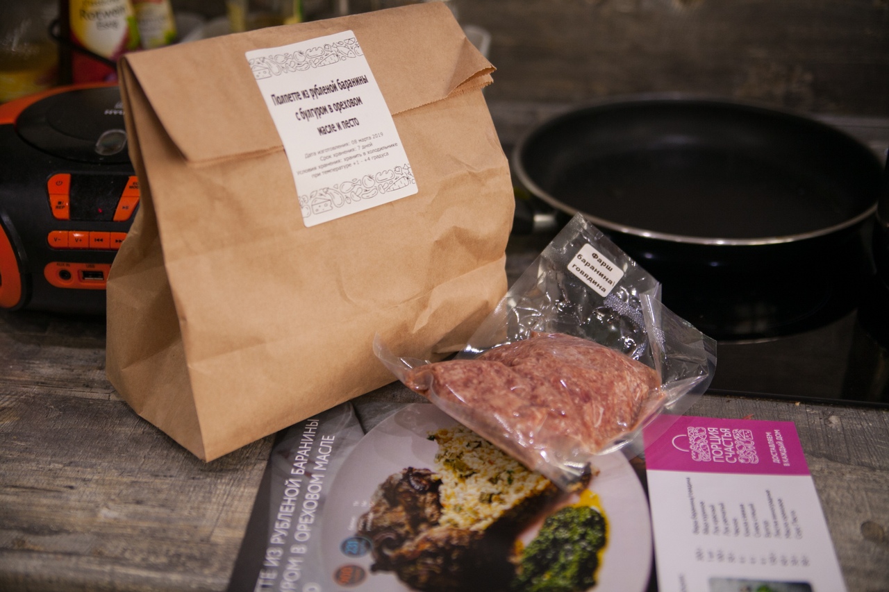 Полпетте из рубленой баранины с булгуром в ореховом масле и песто.